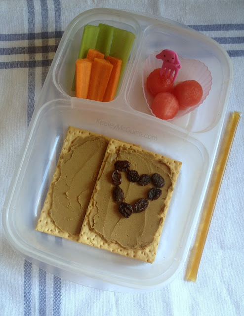 I'm kind of in love with these Ener-G Brand crackers. They're HUGE, taste fabulous, and allergy free. These particular crackers are gluten, wheat, dairy, casein, egg, and nut free. Shown here topped with allergy friendly SunButter sunflower seed spread and a raisin heart.