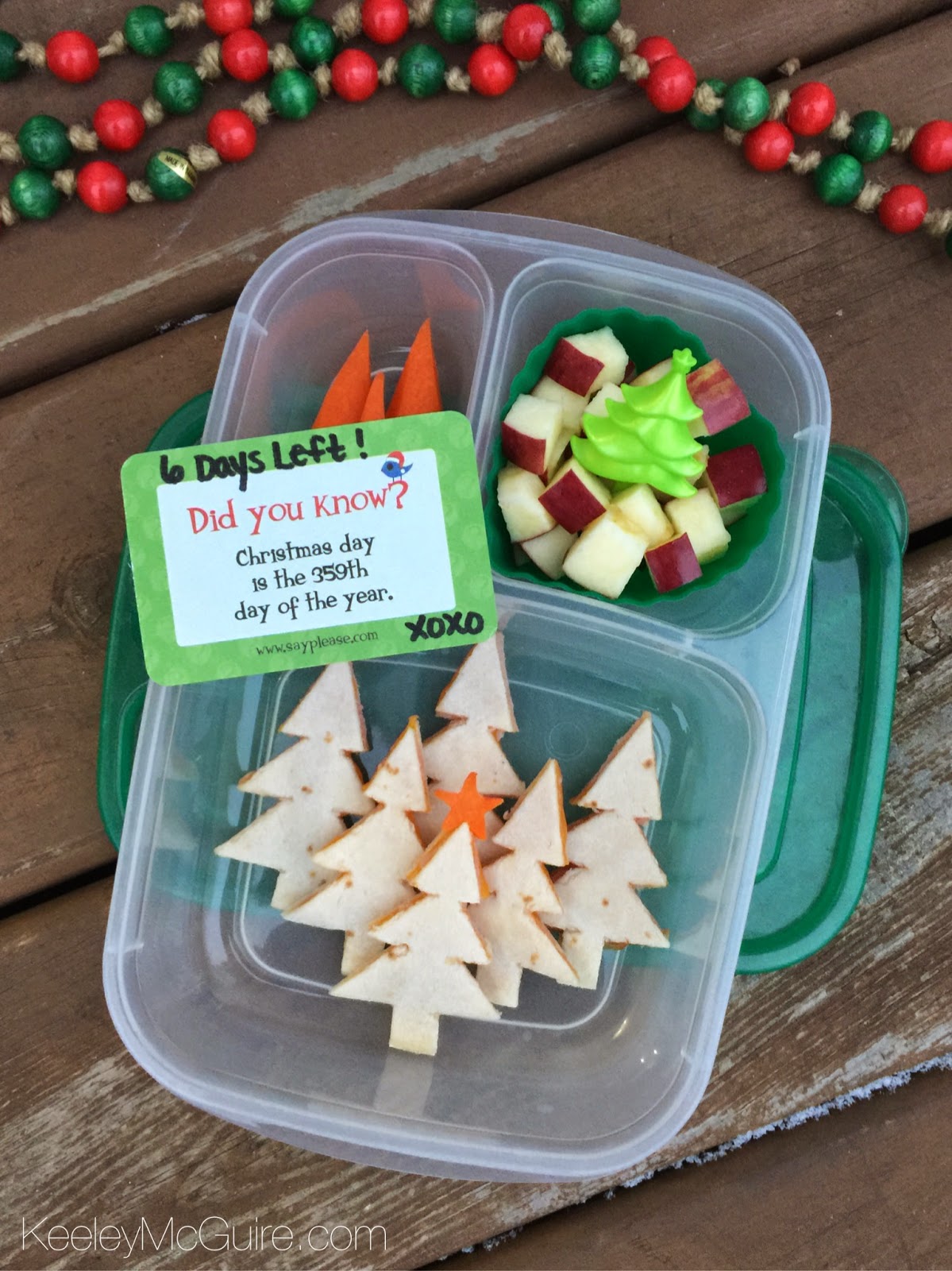 Tuesday with 9 days left, I kept it simple with two turkey & ham sammies on our Udi's GF bread with a Santa & reindeer cupcake ring in the center of each.